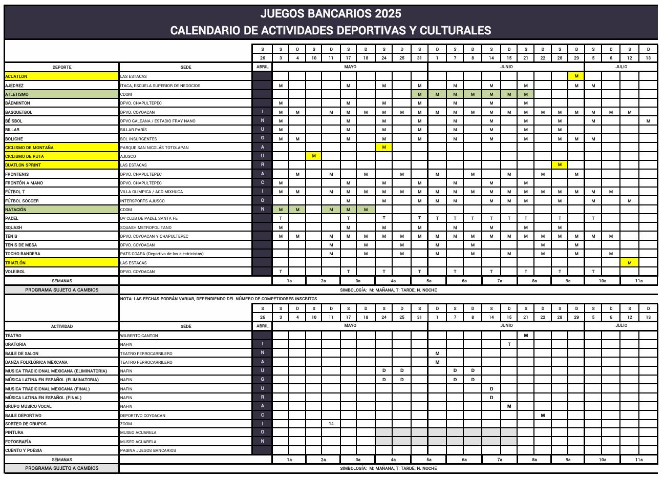 Calendario y Sedes